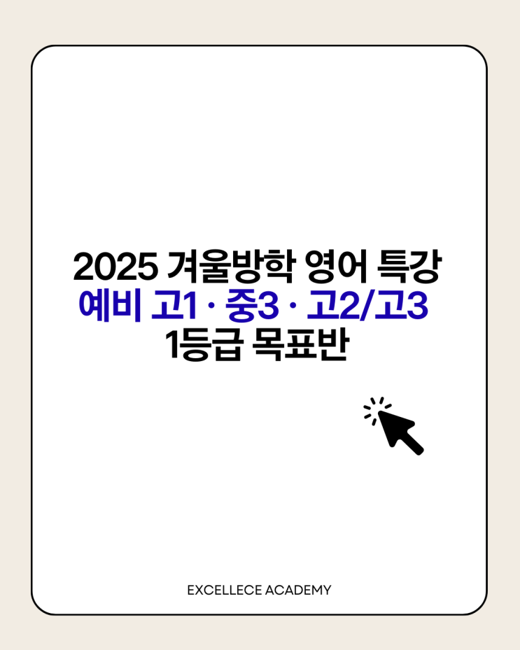 대치동 영어학원) “2025 겨울방학 영어 실력 폭발 프로젝트”예비 고1 · 중3 내신 완성 · 고2/고3 수능 집중반 · 1등급 목표반 모집