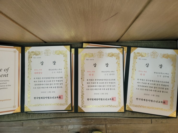 올해 콩쿨도 잘 마무리 하였습니다. 연습하는 기간동안 힘들고 포기하고 싶을때도 있었을 아이들^^ 하지만 끝까지 연습하고 도전하면서 끈기와 성취감을 느끼고 무엇이든 노력만 하면 '' 난 할수 있어 ''를 배울수 있는 경험이었으리라 생각합니다. 연습하는동안 아이들이 너무 잘 따라와주어서 저도 즐겁게 레슨 할수 있었고 무엇보다 준비하면서 더 친해질수 있어서 좋았답니다 또한 콩쿨곡은 평소보다 더 깊게 공부하고 부족한 테크닉과 디테일까지 공부할수 있는 기회이기에 시간적인 여건이 가능하면 꼭 경험해보는것을 추천합니다. 콩쿨을 경험한 아이들은 연주의 폭이 넓어집니다 곡의 흐....... <img src="https://blogthumb.pstatic.net/MjAyNTEyMjNfMTIw/MDAxNzY2NDcyMjkzNDM0.YXFimUbBo9yyLaD9cJG9sjd_8C6uN0dT7AQbJItsZ5cg.Nm6Ul0hbiZwsdZ1g-1EYYTr7Ucx4aVPnJQ3RaEBsrScg.JPEG/900%A3%DF20251219%A3%DF155658.jpg?type=s3" />