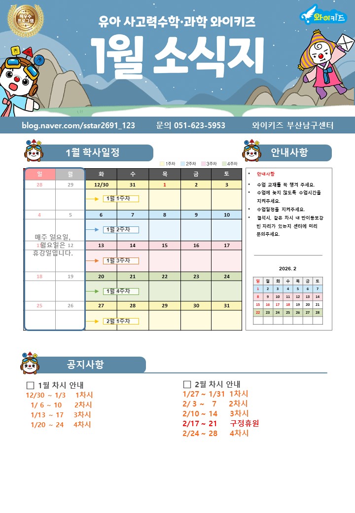 와이키즈 부산남구센터 26년 1월 소식지입니다