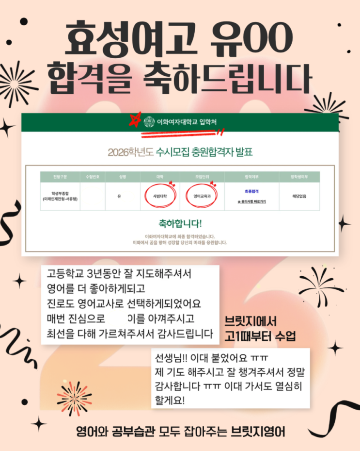 (신월성브릿지영어) 이화여대 영어교육과 합격!!!