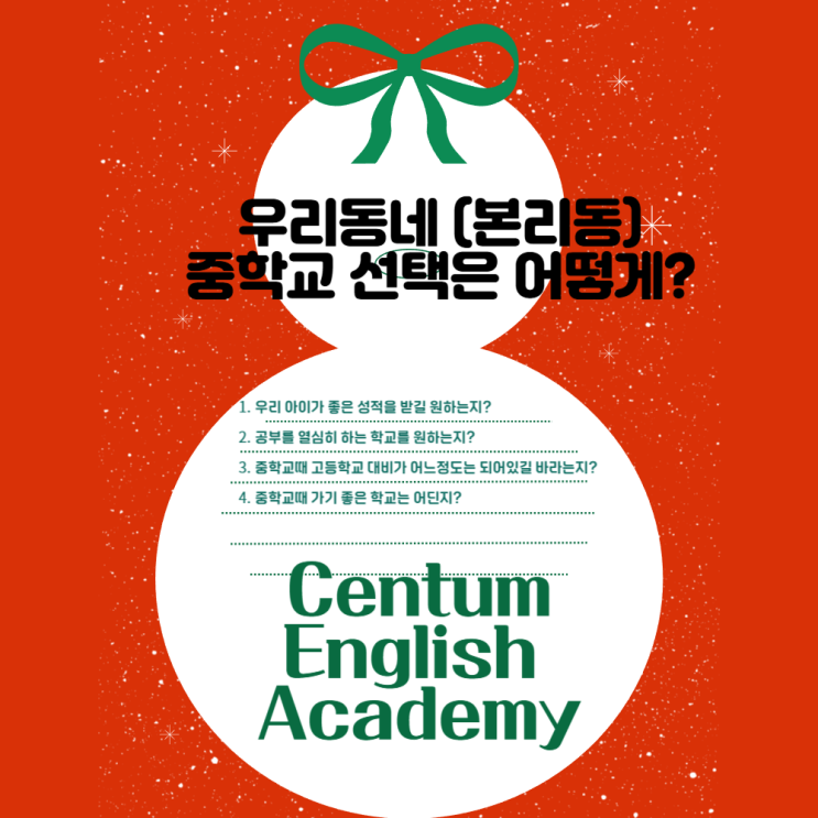 안녕하세요. 오랜만에 글을 올리게 되었습니다. 우리 초등학생들이 처음으로 본인인생에서 큰 결심을 해야하는 순간이 왔는데요. 중학교 선택이겠죠? 우리 아이들이 매번 어느학교를 추천하는지 질문을 하면 수업시간 중에는 바로 저는 1순위는 ~~중학교, 2순위는 ~~중학교, 그리고 안갔으면 하는 중학교 선택을 콕 집어서 말해주곤하는데 이유가 다 있겠죠? 저는 개인적으로 영어 공부는 국가 교과과정보다는 조금 빨리 접해야 그 나이가 되었을때 여유를 가지고 공부를 할 수있다고 합니다. 중학교 선택도 마찬가지입니다. 초등학교 초등학교때는 시험이 없기때문에 막힘없이 영어학습을 쭈~욱 이어갈 수있어요. 그래서 초등학교 4학년때부터 1....... <img src="https://blogthumb.pstatic.net/MjAyNTEyMjJfMjQw/MDAxNzY2Mzg2MzEzMDc5.bZZC0KcxmwvJNNvz5rPpb0enqKaRaZ9nBrc4wdtBaMog.dwG3SQf50v5IOTIw3mzLUR-C0Fs0y__bo7XmnDusrLMg.PNG/%C1%A6%B8%F1%C0%BB_%C0%D4%B7%C2%C7%D8%C1%D6%BC%BC%BF%E4_-001_%2814%29.png?type=s3" />