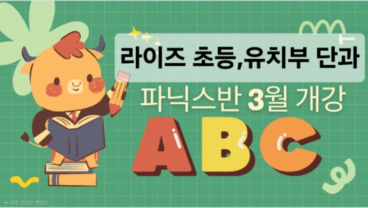 라이즈 초등·유치부 단과 파닉스반 3월 개강 ✨