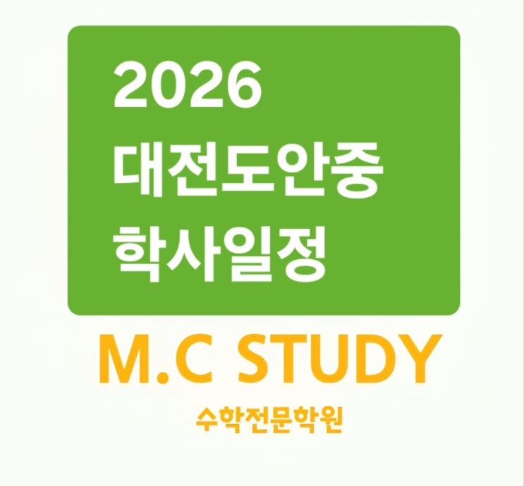 대전 도안 신도시 도안중학교 26년 학사일정 도안중 도보 7분거리 엠씨스터디 수학학원 ⏫️ 26년 엠씨스터디 수업 안내 ● 교실안에서 소외되는 학생이 없는 수학학원 ● 모든 학생이 주인공인 수학학원 ● 학생 한명한명 초말착 관리 ● 무한 오답 클리닉 시스템 ●since 2011 대전 도안 ✅️ 신규 입학 문의 ☎️ 01020309166 *원장이 모든 상담 및 테스트 진행합니다. *방문 상담은 100%사전 예약제입니다. *정원 마감반은 대기해야 합니다. *수업 중에는 전화 상담이 어려울수있습니다. ✅️ 입학 테스트 및 상담(초/중등부) *사전 예약제 : 평일 5시/6시/7시 *소요시간 : 1시간 내외 *준비물: 공부하던 수학교재 *고등부는 테스트 생략 가....... <img src="https://blogthumb.pstatic.net/MjAyNjAyMjdfMTM0/MDAxNzcyMTUzOTkzMjA2.hZdtdVzQrB3RGi9N96lDFWRdvq-RtBWTwpt2J0ulf1Yg.BD2E06oaufGfu7ADCvDj-7yUBiXIzpCdTbtCxhfKpbQg.JPEG/900%A3%DFIMG%A3%DF20231203%A3%DF182501%A3%DF933.jpg?type=s3" />