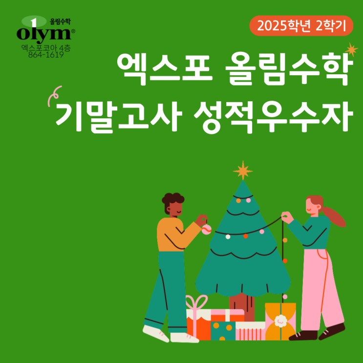 #엑스포올림수학학원 #1학기 #기말고사 #성적우수자 #100점 #1등급 #전민초 #문지초 #전민중 #문지중 #전민고 #대덕고 #대신고 #대성고 #장학생 #2학기 #기말고사 #장학생 #장학금 #겨울방학 #방학특강 #방학집중수업 #매일수업 #선행 <img src="https://blogthumb.pstatic.net/MjAyNTEyMjJfMTE2/MDAxNzY2Mzk2MjYzOTUy.2Nxw_PLt5svYOOMobkDKq6y7xTddaseZ6aWH8_bR-9Ug.1sxFWU2t_b8InYcytxs3DutJxwtNqs2B1dSb2C05MiIg.PNG/%BC%BA%C0%FB%BF%EC%BC%F6%C0%DA-004.png?type=s3" />