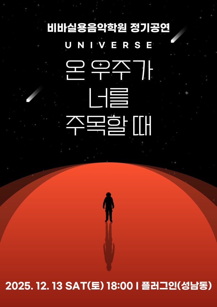 울산보컬학원 비바실용음악학원 정기공연 2025 VIVA CONCERT 안내 입니다. 안녕하세요. 울산보컬학원 비바실용음악학원 입니다. 울산보컬학원 저희 비바실용음악학원의 정기공연이 돌아왔습니다!! 2025 정기공연 - VIVA CONCERT 일시 : 2025. 12. 13(토) 18:00 장소 : 중구성남동 플러그인 ✔️사전예매 기간 : ~ 12/10(수)까지 ✔️예매방법 : 네이버 폼 활용 예매 진행. 비바실용음악학원 인스타 프로필 하단 네이버예매 링크, 혹은 아래 첨부링크 들어가셔서 신청서 작성, 제출 후 티켓비용을 입금 해주시면 확인 후 순차적으로 예매 확정 안내문자가 발송 됩니다. ✔️티켓예매, 문의는 052)913-0370, 010-3913-0370으로 주시면 됩니다. ....... <img src="https://blogthumb.pstatic.net/MjAyNTEyMDlfMjUx/MDAxNzY1MjgyNzYxNzkx.Cp4yM5J0KoZXK7V8enEBzdnbpjKnuXArLGAjtl6V-LYg.jslUw30TfXmwIJhQNLlsa5-cC1xwXAMs3sNcFCpN9PIg.JPEG/2025%BA%F1%B9%D9.jpg?type=s3" />