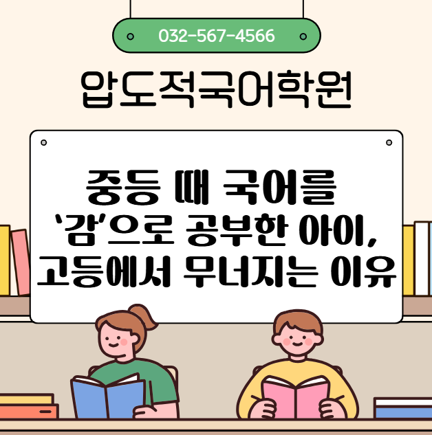 안녕하세요. 청라국어전문학원 압도적국어학원입니다. 많은 학생들이 중학교까지는 국어 성적이 비교적 안정적이지만, 고등학교에 올라가면서 갑자기 성적이 떨어지는 경험을 하곤 합니다. 특히 “중학교 때는 국어를 잘했는데 왜 고등학교에 와서 어려워질까요?” 라는 질문을 많이 듣게 됩니다. 그 이유 중 하나는 바로 중등 시기에 국어를 ‘감’으로 공부했던 습관에 있습니다. 중등 국어 시험은 비교적 지문의 길이가 짧고, 문제 유형도 단순한 편입니다. 그래서 지문을 대략적으로 읽고 감으로 답을 골라도 어느 정도 점수를 받을 수 있습니다. 독서량이 많거나 언어 감각이 좋은 학생이라면 이런 방식으로도 좋은 성적을 유지할 수 있습니....... <img src="https://blogthumb.pstatic.net/MjAyNjAzMDVfMTEz/MDAxNzcyNjc4NDg5MjAy.C62b0bYCofiKS8z-Qdk-FbS2Y9McugVZqdO7u2cKJlUg.BMVse5-AhaTOPkXGHDeVzoJqSUEkc_Hnh9RJQaAHlS4g.PNG/image.png?type=s3" />
