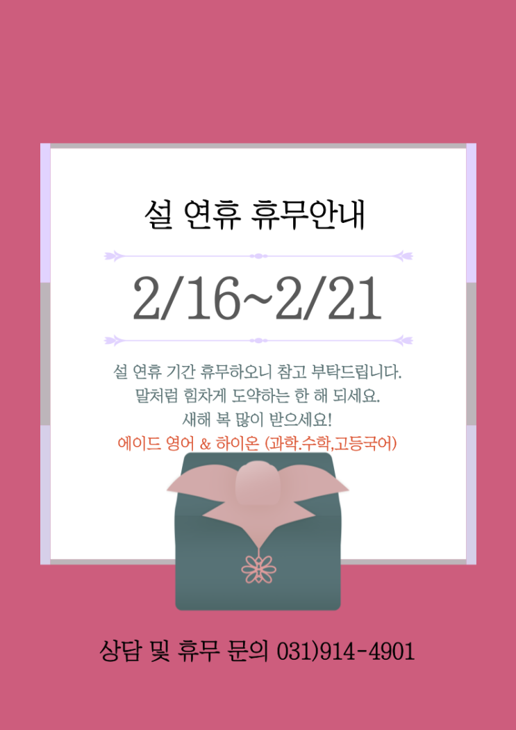 1. 숙제 미완성, 리뷰테스트 미통과 → 수업 후, 완료 후 귀가 2. 당일 자습이 불가한 경우 → 다른 요일에 자습일정 잡은 후 귀가 3. 해당 주간의 완성하지 못한 숙제와 리뷰테스트 재시험 → 그 주의 토요일까지 완료 [다음 시간 테스트] 단어 비교급-최상급Part1 [단어장 아님!!] 독해 Unit13 한글 뜻 암기 문법 비교구문 <img src="https://blogthumb.pstatic.net/MjAyNjAyMTFfMTQy/MDAxNzcwODE0OTU5NDI0.HSSZLzu_T7Lyz75jvJxcdJsXnNOZsBAezMEmbM72dhUg.VqjhLYf571j_c2s5HfCyZsXg0Yi4tXybmji_N0IT3OMg.JPEG/%B4%D9%BF%EE%B7%CE%B5%E5.jpg?type=s3" />