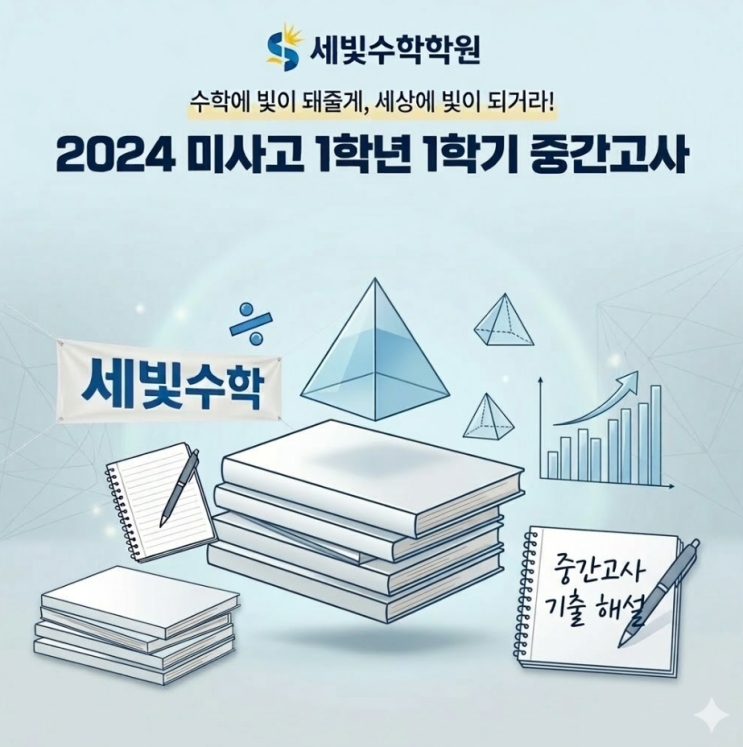 여러분 안녕~~ 이번엔 미사고 2024년 1학년 1학기 중간고사를 분석해 볼 거예요. 우선 시험문제와 해설부터 보실까요~~ 이제 해설을 살펴볼까요? 풀이 과정을 잘 보셨나요? 이번엔 미사수학학원 세빛수학에서 2024년 미사고 1학년 1학기 수학 중간고사 기출문제를 개별 지도로 세심하게 챙겨주는 세빛수학 원장으로서, 핵심만 쏙쏙 뽑아 말씀드릴게요. 꼼꼼하게 분석해 드릴게요~~ 이번 미사고 1학년 1학기 중간고사는 다항식의 연산부터 이차방정식과 이차함수까지 고1 수학(상)의 핵심적인 단원들이 출제되었어요. 전반적인 난이도는 중상 수준이었습니다. 교과서 기본 개념만 대충 알아서는 시간 내에 풀기 벅찬 시험이었어요. 특히, 계산 과....... <img src="https://blogthumb.pstatic.net/MjAyNjAzMTFfODAg/MDAxNzczMjM2NDY1NDM2.3hmpnBmevrn6cCuU3cyy3HH8zWmz1TAzCo-vTjB_IVAg.XufIrQ0fDXAtp7-qp_tz11KIx1_KzEVuHOvwHJRsCN0g.PNG/image.png?type=s3" />