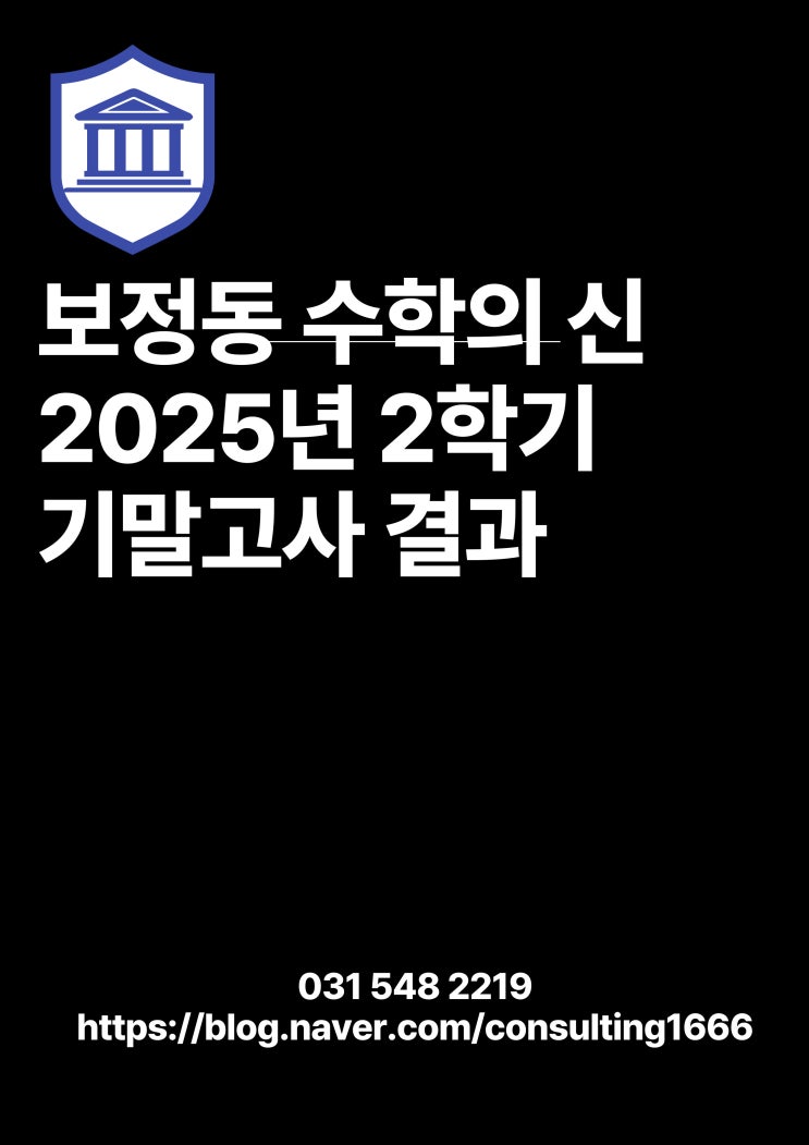 보정동 중등수학학원, 보정동 수학의 신 드디어 2025년 2학기 중학교 기말고사가 끝이 났습니다. 시험이 끝난 후, 학부모님들은 이런저런 생각에 빠집니다. “우리 아이, 지금 방식으로 괜찮을까?” “중학교 수학이 이렇게 어려웠나…” “고등 가기 전에 뭔가 바꿔야 하지 않을까?” 그래서 오늘은 수학의 신 중등 재원생들의 이번 기말고사 결과를 조심스럽지만 솔직하게 공유드리려고 합니다. 이번 기말고사 결과 요약 중등 재원생 80%이상이 90점 이상의 성적과 성적향상이 되었습니다. 성적우수자 대부분은 저희 학원에 6개월이상 다닌 학생들입니다. 이 결과는 우연이 아닙니다. 이번 시험을 계기로 좀 더 수학공부에 관심을 가지고....... <img src="https://blogthumb.pstatic.net/MjAyNTEyMThfMTI0/MDAxNzY2MDUzMjAxNjg3.fPpMz_xddLjamoRXSF9ZpWHEJvfLOJ-6C-w0lvsxcbkg.FAynvkFHQ2bYSuATdwHyDzBIsg6giA2RecHOY6iRLO0g.JPEG/%C1%A6%B8%F1%C0%BB-%C0%D4%B7%C2%C7%D8%C1%D6%BC%BC%BF%E4_-001_%2850%29.jpg?type=s3" />
