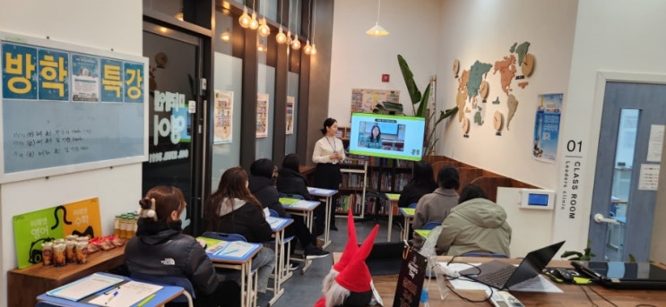 ✨ 두잇영어학원 크리스마스 파티 현장 ✨ 지난 월요일, 두잇영어학원에서 크리스마스 파티를 진행했습니다 연말을 맞아 아이들이 학원에서 조금 더 편안하고 즐거운 시간을 보낼 수 있도록 간단한 파티와 함께 자유롭게 참여할 수 있는 시간으로 준비했어요 친구들과 함께 웃고 이야기하며 즐거운 추억을 만들었습니다 평소에는 수업에 집중하느라 볼 수 없던 아이들의 밝고 자연스러운 모습이 인상적이었고, 학원 공간이 하루 동안만큼은 웃음소리로 가득 찼던 시간이었어요 두잇영어학원은 아이들이 영어를 공부로만 느끼지 않고, 편안하고 안정적인 공간에서 꾸준히 배워갈 수 있도록 환경을 만들어가고 있....... <img src="https://blogthumb.pstatic.net/MjAyNTEyMThfNyAg/MDAxNzY2MDQ4MDg3NTQ0.oQE1qEoEv3csb2dM1vd3H6cizYwDhpSDuzOf9LV2wMwg.p1DERRiT1E_XGKyHzJEZGV4AtQsN6JhTtn9up4NqjmMg.JPEG/900%A3%DF20251215%A3%DF151424.jpg?type=s3" />