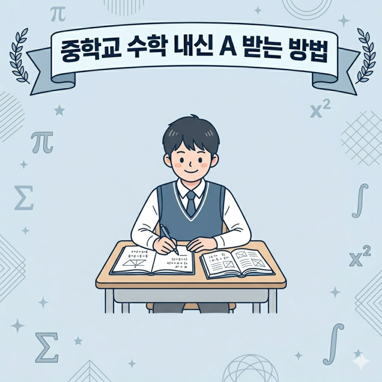 안녕하세요! 수학을 대하는 바른 태도와 더불어 깨닫는 기쁨을 통해 긍정적인 학습 정서를 갖게 하는 퍼스트매쓰 수학학원입니다. 중학교에선 초등때와는 달리 교과 내신을 점수화합니다. 중학교의 다양한 평가를 통해 중학교 내신점수를 산출하는데요. 내신 점수에 따라 지원할 수 있는 고등학교의 레벨이 달라지기 때문에 중학교의 내신 관리가 중요할 수 밖에 없죠. 오늘은 중학교 내신 관리를 위한 방법에 대해 얘기해 보고자 합니다. 1. 교과서 & 유인물 무한 반복 (시험 적중의 핵심) 많은 학생이 시중의 어려운 문제집을 풀면 성적이 오를 거라 생각하지만, 출제 위원은 바로 학교 선생님입니다. 시험 문제의 80~90%는 결국 교과서와....... <img src="https://blogthumb.pstatic.net/MjAyNjAzMTdfMjIg/MDAxNzczNzI4MjA2OTAw.StSjFAdOcxR_Tw3UREmr0S_UY7JQ5xjMYqOpFyU0rlsg.V-TLC4vENkS11Y-I6fOUGbG4hMSl0EYHXJtp82cn2QAg.PNG/Gemini_Generated_Image_bv0csgbv0csgbv0c.png?type=s3" />