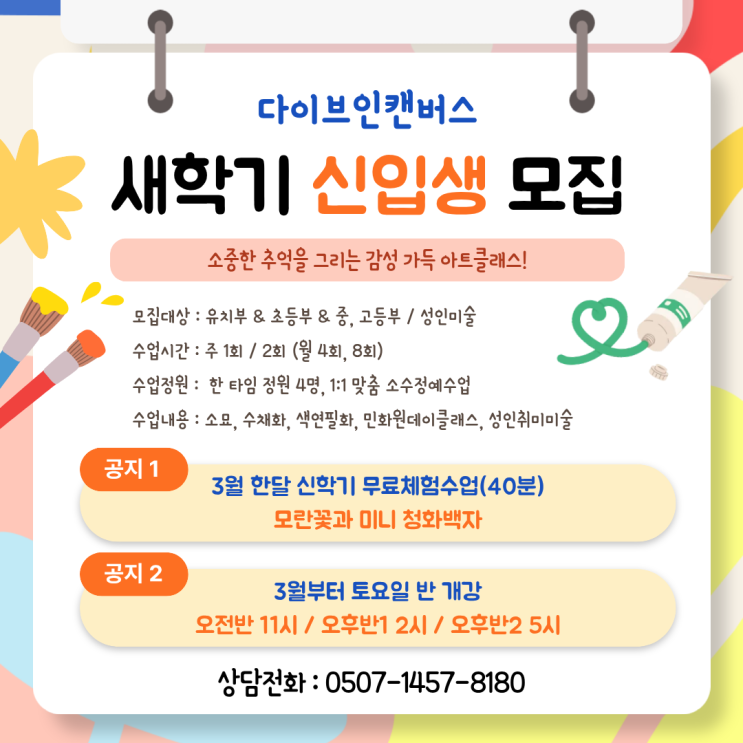 다율동 미술 다이브인캔버스 미술교습소 새학기 신입생 모집