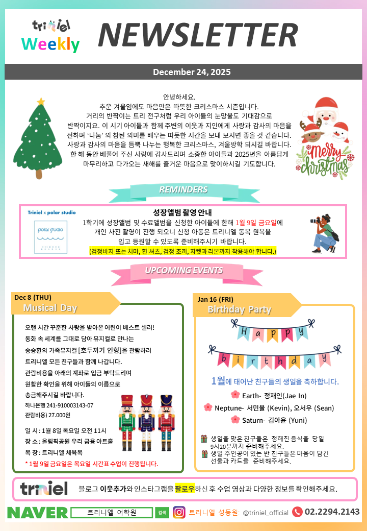 삼성영어셀레나 행당학원 2025년 12월 소식