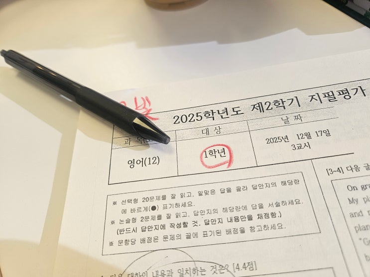따끈 따끈 25년 기말 분석 들어가여~ 시험범위는 4~6과 까지로 적절한 범위로 출제 되었습니다. 생애 첫 시험을 시작한 학생에게, 주어진 결과는 지나온 행적의 남음이지만, 지나온 길보다 앞으로 나아가야 할 길이 멀기에 시작을 축하하는 팡파레를 불어주고 싶어! 아무도 너의 노력을 몰라주어도 쌤은 모든 걸 기록하고 기억하며 널 응원할게~ 잘했고, 잘 할거고, 잘 될거야~ 걱정마! 1. 문항별 내용 분석 (22문제) 1위) 본 문 (11문제 50%) 2위) 어 법 (5문제 22%) 3위) 대화문 (4문제 18%) 4위) 서술형 (2문제 10%) 2. 그래서 준비는 어떻게? 첫 번째) 단어, 문장, 지문의 소리 인식 10000%(MAX) 스피드 있게 모든 영어를 소리내어 말 할 수....... <img src="https://blogthumb.pstatic.net/MjAyNTEyMTlfMTU4/MDAxNzY2MTIzNDA4MzI0.kGAxNhdaL01WctPRCOP31gt_xFvKDoV21kkRJUhxSG8g.R4KsWwxWQ7-TuwffD9ZaC8nZv7OKlgUgbEGeuoTWuPEg.JPEG/KakaoTalk_20251219_144941691_01.jpg?type=s3" />