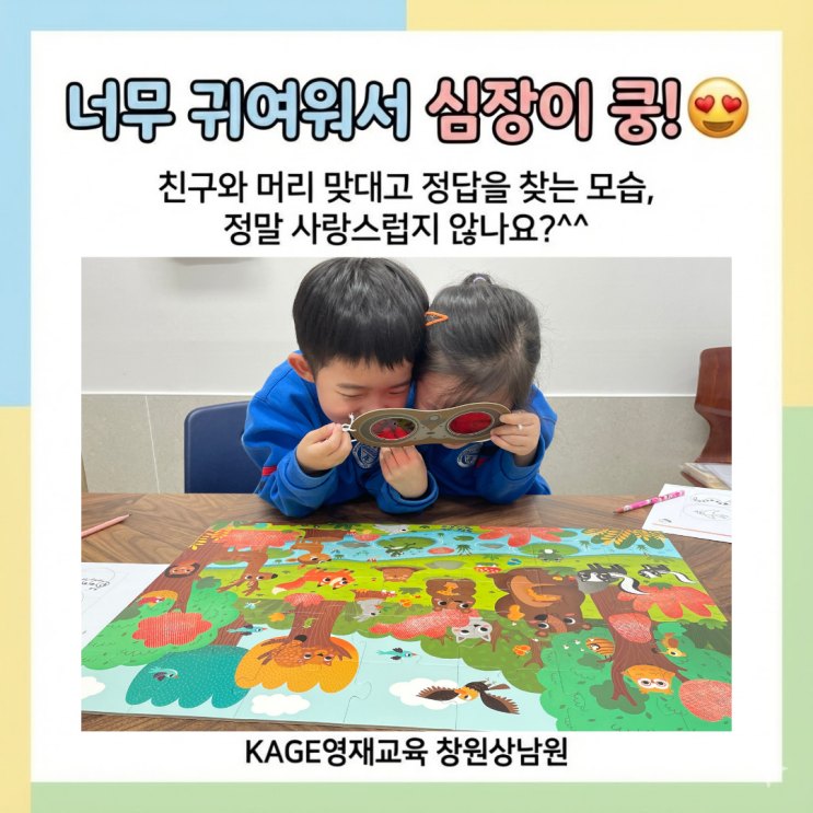 시각적 변별력 빨간 필터를 통해 배경과 대상을 구분하며 시각 정보를 처리하는 능력을 키웁니다. 집중력 훈련 복잡한 그림 속에서 내가 찾는 대상을 끝까지 추적하는 끈기를 배웁니다. "어? 여기 숨어 있었네!" 친구와 머리를 맞대고 정답을 찾았을 때의 그 눈빛! ⚡ 눈으로는 관찰하고, 손으로는 교구를 조작하며 우리 아이들의 두뇌는 오늘도 쉴 새 없이 자라고 있습니다. <img src="https://blogthumb.pstatic.net/MjAyNTEyMjFfNDcg/MDAxNzY2Mjc5MDgwNzI4.VQ-LxU_kciLfLjGY18BeW7vvOacPh-4j89-xlyQNRngg.R3sEq1DxtyHYAb-jJgZpUtzcI9rL4uYMPYReef6-d9cg.PNG/1.png?type=s3" />