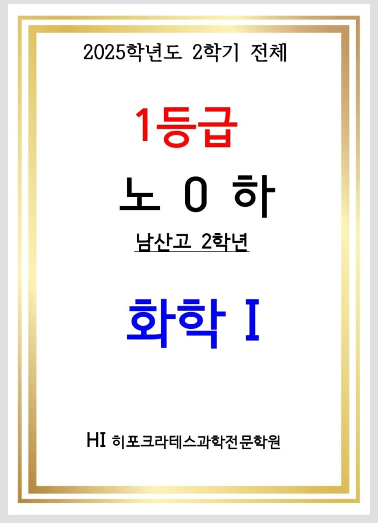 [히포크라테스과학전문학원] 2025년도 2학기 고2 과목별 1등급 확정중!