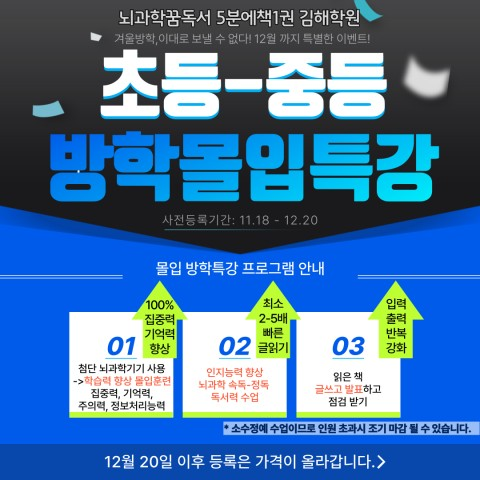 김해 학원 겨울방학특강, 집중력 독서력 훈련으로 새 학기 자신 있게 대비하세요!