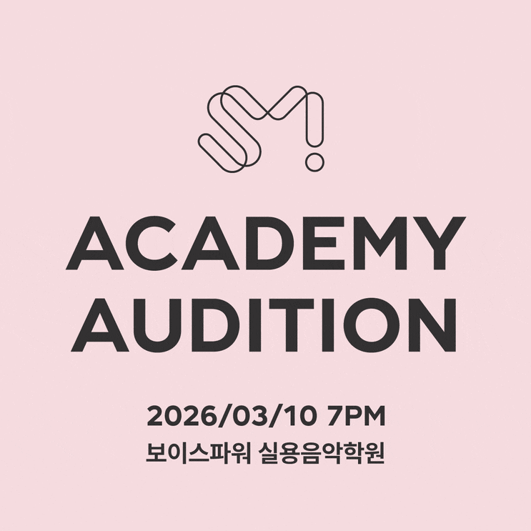 안녕하세요! 2008년 개원 이래 수많은 합격생을 배출하며 탄탄한 누적 데이터를 자랑하는 부산 실용음악의 중심, 보이스파워 실용음악학원 입니다. 드디어 많은 예비 아티스트분들이 기다리시던 SM엔터테인먼트 내방 오디션이 저희 보이스파워에서 개최됩니다. 오디션 핵심 정보부터 SM 합격 꿀팁까지, 지금 바로 확인해 보세요! 오디션 요강 ◆ 일시: 2026년 3월 10일 (화) 저녁 7시 ◆ 장소: 보이스파워 실용음악학원 내 ◆ 지원자격: 성별 및 국적 무관, 2007년생~2016년생 ◆ 지원 분야 (아래 중 택1) · 보컬/랩: 무반주, 하이라이트 1분 내외 · 댄스: AR준비 / 임팩트 있게 준비 · 연기: 자유 연기 1분 내외 ◆ 지원 방법: 현장 접수 (....... <img src="https://blogthumb.pstatic.net/MjAyNjAyMjNfNDIg/MDAxNzcxODI3MjMyNDYx.f5hUESiewMC3dKK1MGpb0ECt41AJR9igmlNSXPVzRfQg.wC9pLUPGhj4XSkHN7GSBJ5DMm26PrdB3-3PyFKRng5wg.GIF/260310_%BA%B8%C0%CC%BD%BA%C6%C4%BF%F6.gif?type=s3" />