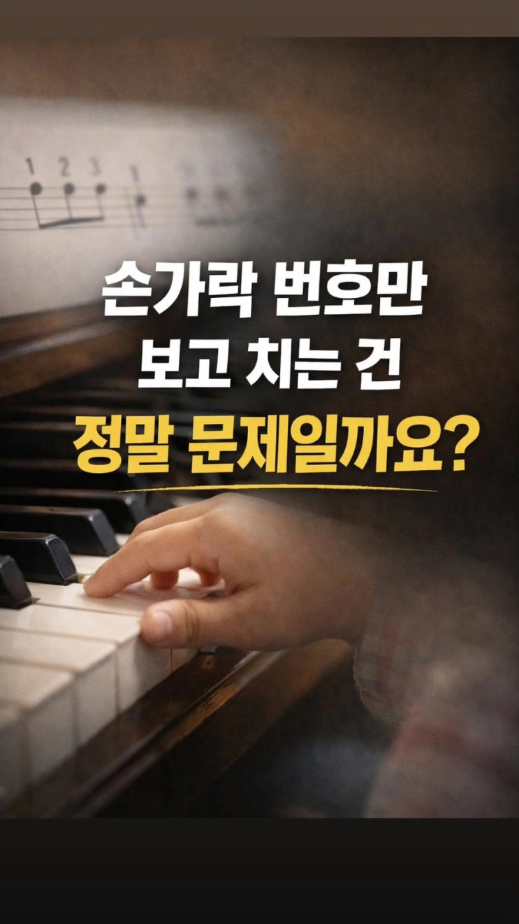 학부모 상담을 하다 보면 가장 자주 듣는 질문 중 하나가 있습니다. “손가락 번호만 보고 치면 나중에 악보를 안 읽게 되지 않나요?” 그래서 많은 부모님들이 ‘손가락 번호 = 나쁜 습관’이라고 걱정하십니다. 하지만 저는 이 질문을 들을 때마다 조금 다른 생각을 하게 됩니다. 문제는 손가락 번호 자체가 아니라, 그걸 언제까지, 어떤 방식으로 쓰느냐입니다 1️⃣ 손가락 번호는 왜 생겼을까? 손가락 번호는 아이들을 편하게 만들기 위해 생긴 장치가 아닙니다. 양손 구분 좌우 대칭 인식 음의 방향 감각 손의 위치 인지 이런 초기 인지 단계를 돕기 위한 도구입니다. 즉, ‘외워서 치라고’ 만든 것이 아니라 ‘이해하기 위해’ 만들....... <img src="https://blogthumb.pstatic.net/MjAyNjAyMDRfMjU2/MDAxNzcwMTU4ODU0ODY0.r_lFr9HrYuK8tN9RycEOn40u7TSzYKuWd2YvDn76F8kg.Qi7izuImbEDGqGSU7o8BmuiOjoxCiCmul33Voxrrb2kg.JPEG/900%A3%DFIMG%A3%DF20260130%A3%DF190715%A3%DF764.jpg?type=s3" />