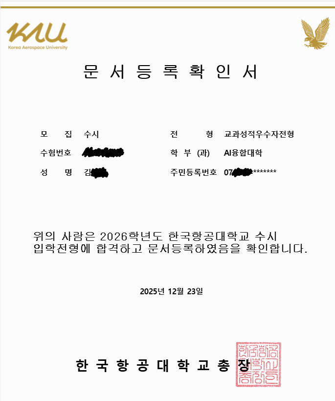 2025 한국항공대학교 합격 성문고 김**