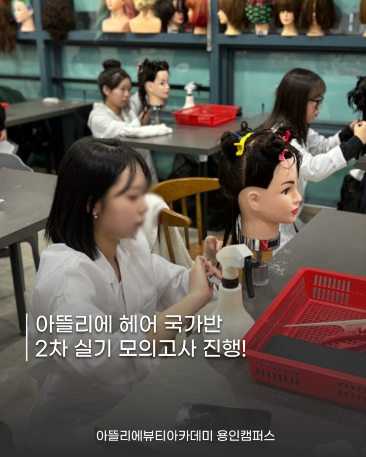 여러분, 안녕하세요~! 아름다움과 뷰티 트렌드를 창조하는 교육 용인 아뜰리에뷰티아카데미입니다. 3월이 지나가면서 기온이 많이 올라가고 있죠!! 꽃이 피는 계절이 다가오고 있습니다~ 따뜻한 날씨에 자격증을 취득하게 된다면 기분이 더 좋지 않을까요?? 오늘은 실기 합격을 위한 모의고사를 진행하는 모습을 보여드리겠습니다~! 헤어국가자격증 뿐만 아니라 모든 실기시험을 위해서는 모의고사를 해보며 시험 분위기에 적응하는것이 중요하다고 생각합니다! 헤어는 정교한 작업이 필요하고 시간을 정확히 체크해야하니 미리 연습해보는건 시험에 많은 도움이 되지 않을까요~?? 실수와 긴장감을 줄이고 완성도 있는 결과물로 높은 점수를 받으....... <img src="https://blogthumb.pstatic.net/MjAyNjAzMjNfMTUz/MDAxNzc0MjQwNjg1NzQz.EXC4AN-h2vylLbPv3zAGH9SDrFtjNOGmAw5LWBznQn0g.hUu3HqnGxl4ZUJbrQqYtzOZ1bfUIhr-7jRLKNHBS198g.JPEG/KakaoTalk_20260323_132654444.jpg?type=s3" />