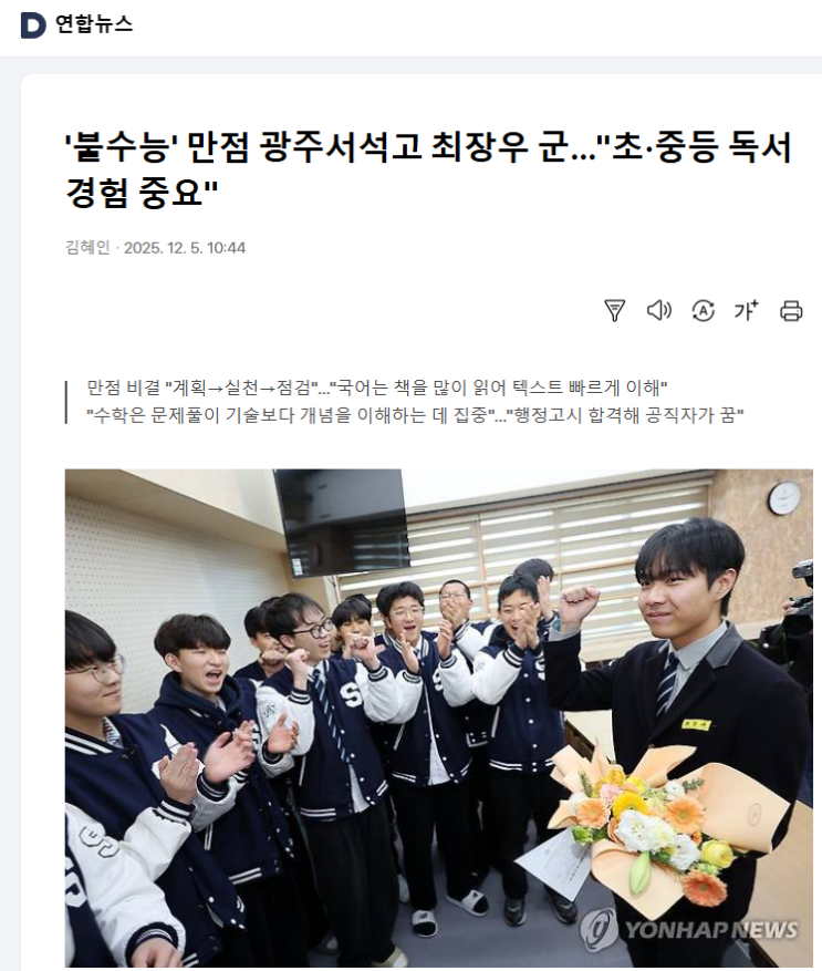 불수능 만점자가 말한 '독서의 힘' (두정동 리드인톡톡국어독서학원)