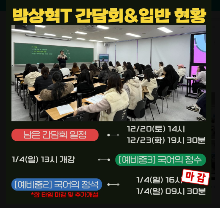 [어그나무] 국어 박상혁T 2026 중등 간담회&입반 현황 안내
