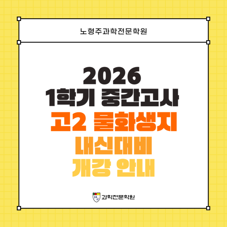 [은평구과학학원/노형주과학전문학원] 2026 1학기 중간고사 고2 물화생지반 내신대비 개강 안내 (3/25 순차 개강)