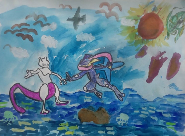 창의 아동 미술반 강남 대치동 개포동 일원동 수서 미술학원 홍익화실 창의력 아동 미술반 이야기만들기 그리기 " 포켓몬스터세상"