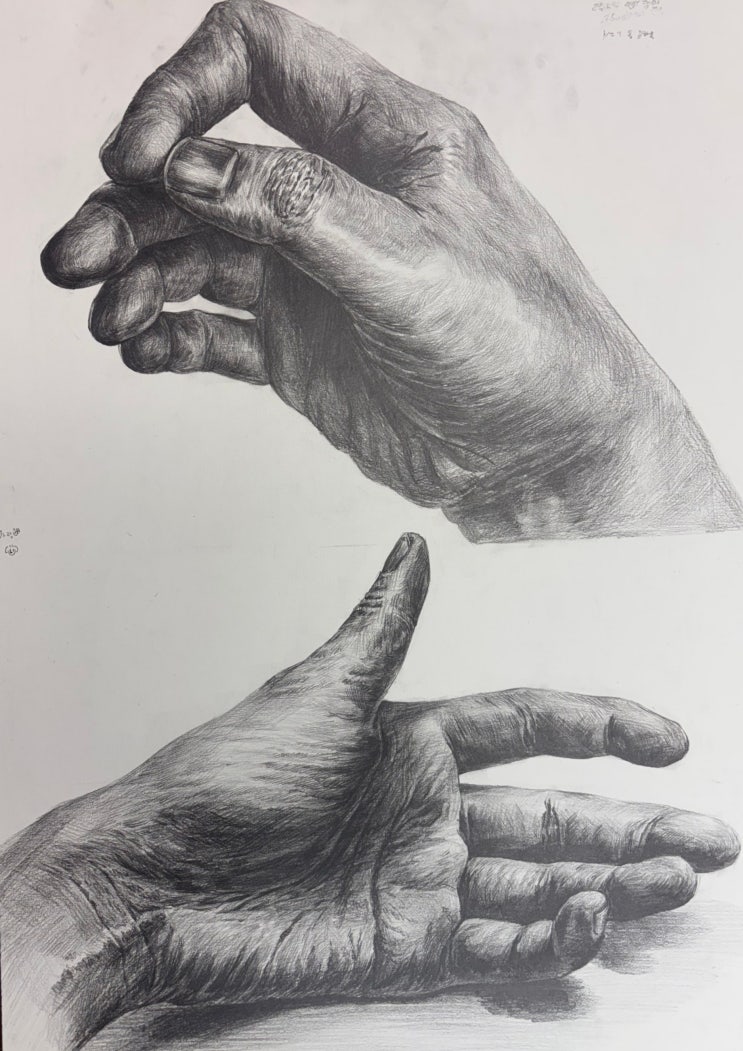 안녕하세요 목우미술학원 중등반 옌T 입니다. 중등반 특강이 시작되었습니다. 1월 동안에는 손을 집중적으로 다뤄봤어요 저는 인체에서 똑같이 그려내는 것은 물론 중요하지만, 자연스럽게 표현해내는 것이 가장 중요하다고 생각합니다. 그러기 위해서는 구조와 부피에 대해 이해를 하고 여러가지 형태를 지속적으로 스케치하며 연습해야 합니다. 아이들이 스스로 내부 구조를 이해하며 그려보는 것이 중요하며 큰 비례와 축이 나가지 않도록 강조합니다. 스케치가 나온다면 톤까지 자연스럽게 연결하여 뼈와 근육의 재질 차이도 배워보았어요 아이들의 손 내부 구조 완성작입니다! 명칭도 적으며 내 손은 어떻게 생겼는지 주변 친구들과 선생님....... <img src="https://blogthumb.pstatic.net/MjAyNjAyMjRfMjgw/MDAxNzcxOTEyNjYyMTM2.66QXBMGoh5kGsYB-SHx6papctpjNL10fML4vw1yvy7Mg.SJqX3u7teD0vTb9hh-h-5CvyYNVe8qWnhDGRMdJvFWIg.JPEG/KakaoTalk_20260224_145513926_01.jpg?type=s3" />