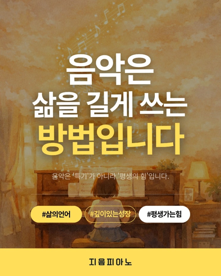 음악은 왜 배워야 할까요? 많은 분들이 음악을 '취미' 혹은 '특기'의 영역으로 생각합니다. 하지만 음악은 단순히 손을 움직이는 기술이 아닙니다. 악보를 읽고, 곡의 구조를 이해하고, 앞으로 이어질 흐름을 예측하며, 어떤 표현을 선택할지 고민하는 과정. 이 모든 사고 활동이 한 곡 안에 담겨 있습니다. 한 곡을 완성한다는 것은 문제를 끝까지 붙잡는 경험이며, 긴 흐름을 읽어내는 사고력을 기르는 시간입니다. 그래서 음악은 '감성 과목'이 아니라 '사고를 훈련하는 예술'입니다. 또한 음악은 감정을 다루는 훈련이 됩니다. 우리는 기쁨보다 불안과 좌절을 더 자주 마주합니다. 연습 과정에서 잘....... <img src="https://blogthumb.pstatic.net/MjAyNjAyMjJfMjk5/MDAxNzcxNzU3OTc5ODQ4.l55zjLhtA0RVuq9Tv2pJ_mKmG7wfYehniVLO8An2YPIg.yyEOpss9h0w9ACnPeOvnjsMAWxtusYOmk2AUAA2L0rcg.JPEG/900%A3%DF1771757888869.jpg?type=s3" />