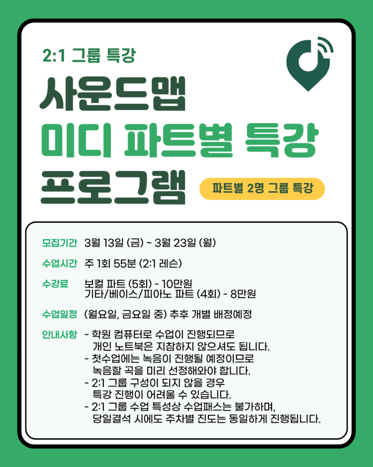 [탄현역 미디 학원] 사운드맵 미디 파트별 그룹 특강 개강