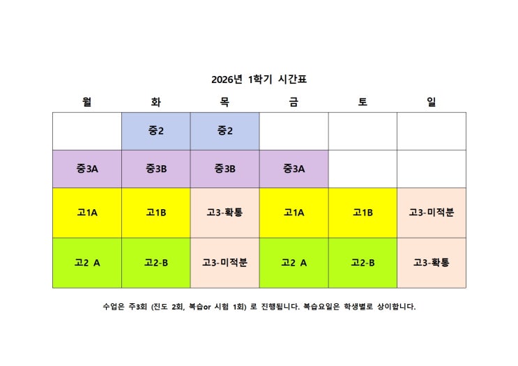 2026년 1학기 시간표