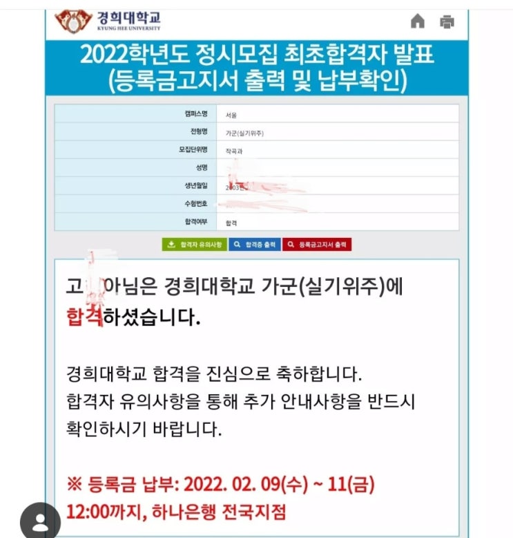 안녕하세요, 이화레슨실 입니다. 작곡 입시를 준비하는 학부모님들과 상담하다 보면 가장 많이 하시는 말씀이 있습니다. "우리 아이가 목표로 하는 학교의 스타일을 잘 아는 선생님을 찾고 싶어요." 그 질문에 이화레슨실은 **'결과'**로 답해드립니다. 학교마다 요구하는 음악적 색깔과 입시 경향은 모두 다릅니다. 이화레슨실은 24년의 노하우로 각 대학이 원하는 '합격 포인트'를 정확히 짚어냅니다. 이화레슨실 주요 대학 합격 실적 경희대학교 합격 (2022, 2025학년도) 연세대학교 최종 합격 (2026학년도) 한국예술종합학교 합격 (2021, 2024학년도) 이름만 들어도 가슴 뛰는 이 대학들에 우리 아이들이....... <img src="https://blogthumb.pstatic.net/MjAyNjAyMjVfNjMg/MDAxNzcyMDExMDcwNzM3.lPTOufhUFL6H_ZrsqE3vVRxMqNAUjFWW6YBwbU5NFTgg.pSsozKrhdxtZ6k9YMWwonvVSRa02J0X3LTqCmtxf2ekg.JPEG/900%A3%DFScreenshot%A3%DF20260209%A3%DF215906%A3%DFInstagram.jpg?type=s3" />