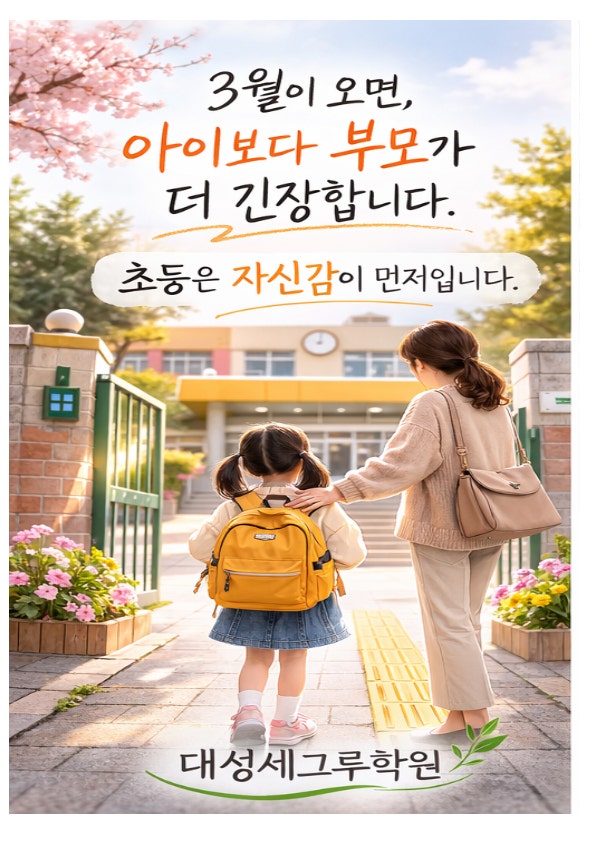 2월이 끝나가면 엄마들은 괜히 더 분주해집니다. 새 학용품을 사고, 시간표를 확인하고, 학원 스케줄을 다시 맞춰보면서도 마음 한켠엔 이런 생각이 스칩니다. “우리 아이, 잘 적응할 수 있을까.” 아이는 아무렇지 않은 척하지만 엄마는 압니다. 낯선 반, 새로운 친구, 달라지는 수업. 그리고 슬쩍 더 어려워지는 공부. 초등 3월, 가장 많이 듣는 말 “우리 아이 기초가 부족한 건 아닐까요?” “숙제가 많아지면 힘들어하지 않을까요?” “학원 다니면 스트레스 받지 않을까요?” 초등 부모님의 걱정은 성적보다 ‘아이 표정’입니다. 학원에서 웃고 있는지, 주눅 들지는 않는지, 집에 와서 힘들다고 하진 않는지. 그 마음을 저희도 잘 알....... <img src="https://blogthumb.pstatic.net/MjAyNjAyMjRfOTgg/MDAxNzcxOTI3OTA4ODkz.zqrUTx38xogOQhHCAOajFJYi8Q1CJv8DYkKCX3Ew42og.7YKTgTdkztOCfd186R4BYm9aMUsmNfHDcVxnyEXmhfUg.JPEG/%C1%A6%B8%F1%C0%BB_%C0%D4%B7%C2%C7%CF%BC%BC%BF%E4_1.jpg?type=s3" />