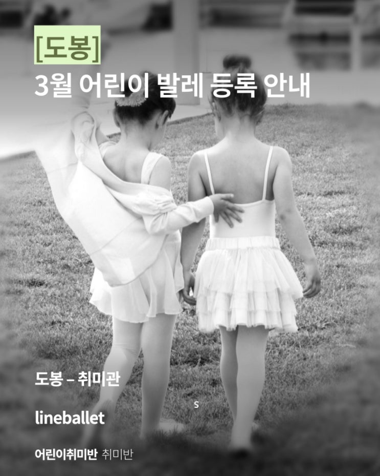[도봉] 라인발레무용학원 2026년 3월 어린이 발레 등록 안내 초등반 STEP2 · 고급반 STEP3 등록 기간 : 2월 23일(월) ~ 마감 시까지 새 학년을 준비하는 3월, 아이들에게 바른 자세와 아름다운 움직임을 선물해 주세요. ✔ STEP2 (초등 취미반) 대상 : 초등학교 1학년 이상 시간 : 월·수 p.m. 5:30 ~ 6:30 수업료 : 월 14만원 기초부터 탄탄하게, 바른 정렬과 음악성을 함께 배우는 초등 전문 커리큘럼입니다. ✔ STEP3 (고급반) 대상 : 초등학생 2학년 이상 (1회 무료 체험수업 후 담당 선생님이 등록 여부를 안내드립니다.) 시간 : 화·목 p.m. 5:00 ~ 6:30 수업료 : 월 22만원 전공을 염두에 두거나 보다 체계적인 훈련을 원하는 학....... <img src="https://blogthumb.pstatic.net/MjAyNjAyMjNfMTk2/MDAxNzcxODU1OTk5MjQ2.Lncxqjc46UI2q1rS0QCVxVNrkpBYnx3oX3jvwlq_tZIg.uePqujLBMuiDbdgJj42o-2pOaZoA3d5UqLxpylWrhmcg.JPEG/900%A3%DF1771851240856.jpg?type=s3" />