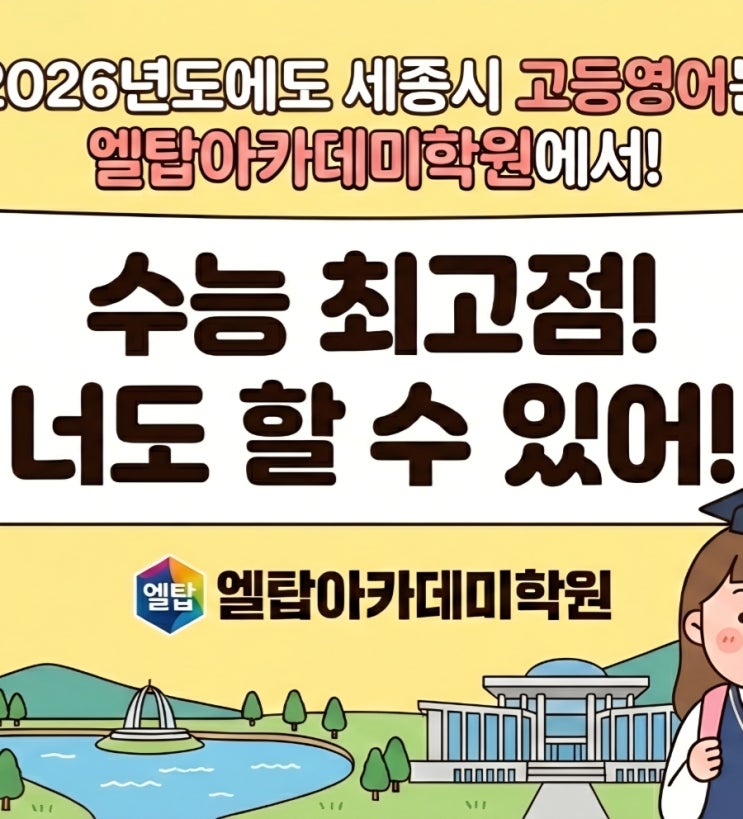세종시 고등영어 전문학원 엘탑아카데미학원 고등부 2월 T/O 입니다 예비중3 : 3월에 입학가능 2명 예비고 1 : 3월에 입학가능 화목반 1명 예비고 2 : 월수반 3명 예비고 3 : 화목반 3명 초중 수업 없습니다. 오직 고등전문 영어학원입니다. 고3 수능 영어 정시 준비는 빠를수록 좋습니다. 고3은 2월부터 연계교재로 수업합니다. 더 늦기 전에 시작하세욥! <img src="https://blogthumb.pstatic.net/MjAyNjAxMThfNTIg/MDAxNzY4NjY4NTE3OTIw.Y7C6ZYR_0QlcySmcpXpTfLtZr2EVC6SORYdb3vafxjkg.Z-8ofrXNMMcEQteHu7yWMPkgSQrzkXASthLABxRfdxgg.JPEG/900%A3%DF1768668015712%A3%A81%A3%A9.jpg?type=s3" />