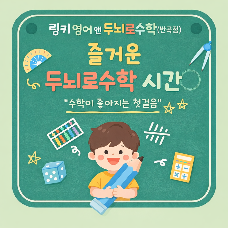 수학은 정답 맞히기가 아니라, 생각을 설계하는 연습입니다. 두뇌로 수학은 ‘수의 원리’를 이해하는 활동으로, 아이의 사고력을 키웁니다. 수학은 자신감을 만드는 과목입니다. “내가 해냈다”를 반복한 아이는 새로운 문제 앞에서도 쉽게 포기하지 않아요. 수학은 ‘속도’가 아니라 ‘구조’를 아는 힘입니다. 10의 구조, 묶기, 분해를 이해하면 큰 수도 자연스럽게 다룰 수 있어요. 아이들의 하루는 이미 수학으로 가득해요. 나누기, 비교하기, 순서 정하기, 시간 가늠하기… 이건 전부 수학적 사고입니다. 우리가 수학을 챙기는 이유는, 아이가 생활 속에서 판단하고 선택하는 힘을 키우기 위해서예요. 두뇌로 수학은 수학을 ‘놀이+원리....... <img src="https://blogthumb.pstatic.net/MjAyNjAxMjBfNjcg/MDAxNzY4ODc3NjM5MTc0.IZ280UpdzcFt6-q-UMY8zQMJ4U2DHvYZpnUnySrimMMg.iaTLof7Zc_OpoGWXPCZEwZ_0jmZAMGqEboIPMD1KlOUg.PNG/%B8%B5%C5%B0%BF%B5%BE%EE%BE%D8%B5%CE%B3%FA%B7%CE_%BC%F6%C7%D0.png?type=s3" />