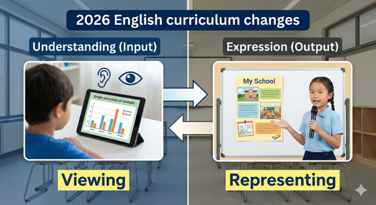 안녕하세요, 도담동 캐나다어학원 아이린입니다. 학부모님들, 2026년부터 초등 영어 교육과정이 대대적으로 바뀐다는 사실, 알고 계셨나요? 단순히 영어를 '잘하는' 것을 넘어, 영어를 도구로 세상을 이해하고 표현하는 능력이 더욱 중요해집니다. 오늘은 2026년 개정 교육과정의 핵심 변화와 학년별 구체적인 공부 방법을 정리해 드리고, 우리 아이들이 변화하는 교육 환경에서 어떻게 '창의융합인재'로 성장할 수 있을지 이야기해 보려 합니다. 1. 2026년, 무엇이 달라지나요? (이해와 표현) 기존의 영어 교육이 듣기, 읽기, 말하기, 쓰기 4가지 영역으로 나뉘어 있었다면, 앞으로는 크게 "이해(Understanding)"....... <img src="https://blogthumb.pstatic.net/MjAyNjAxMjZfMTIx/MDAxNzY5NDAwOTA3NzE4.UeBKn9YHe64kEe0iJpvN4-E7K9Bnm8XncGrYpk38PAUg.yq8pmVMWL3zRnVH-H5Eo9reJA5kwSuYOCWdAsiCh5m4g.PNG/Gemini_Generated_Image_j5a8d9j5a8d9j5a8.png?type=s3" />