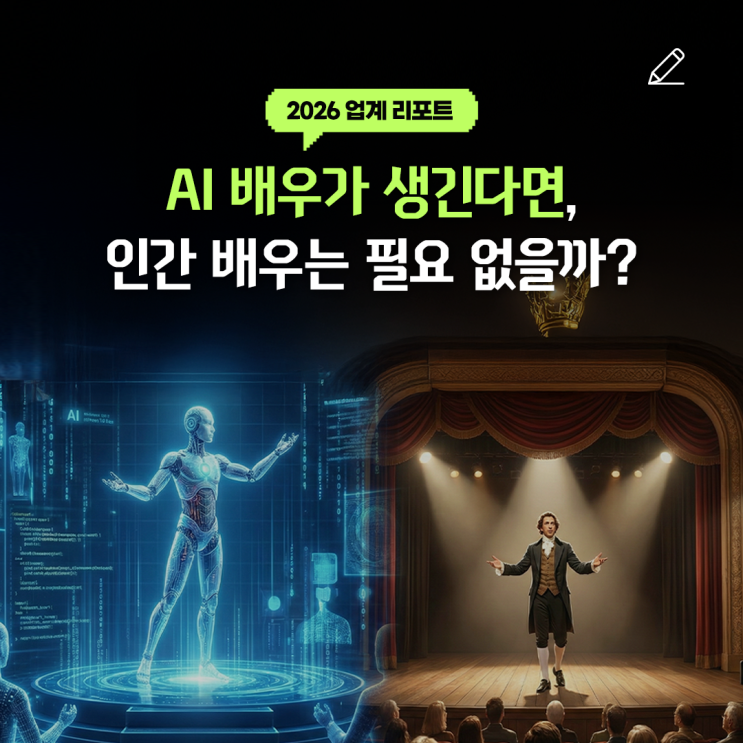 “AI가 내 역할까지 대신한다고?” 이제 배우도 기술과 경쟁하는 시대. 국내 단편영화 '정류장'부터 할리우드 AI 배우 '틸리 노우드'의 등장까지 영화 산업과 제작 전반에 새로운 논쟁이 시작되었습니다. AI는 제작비와 시간을 줄여주지만, 인간 고유의 역량인 창의성, 즉흥성은 아직 대체 불가! 결국 기술이 흉내 낼 수 없는 ‘나만의 무기’가 필요합니다. AI 시대, 인간 배우가 반드시 준비해야 할 핵심 포인트 4가지! AI가 놓칠 수 있는 인물의 디테일 설계하기 ❤️ 진짜 경험에서 나오는 감정 ⚡ 예상 밖의 순간의 충동이 살아있는 연기 = 경쟁력 함께 일하고 싶은 배우 되기 사진 출처....... <img src="https://blogthumb.pstatic.net/MjAyNjAzMDZfMjcy/MDAxNzcyNzg0NjI3MDQ4.SUM58kQ4pV974tHPNADK72UFPbHDFlE5jjjXXWShJ0Qg.JmmDPss0-tgsBfYs-6N37GMRtfpNcJToFnBL8aVY0Rsg.PNG/KakaoTalk_20260306_135000091.png?type=s3" />