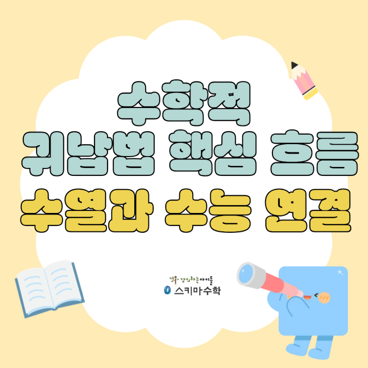 수학적 귀납법 정리, 수열부터 수능 빈칸까지 이어지는 증명 사고법 수학적 귀납법은 수열과 증명 단원에서 자주 등장하는 핵심 방법입니다. 형식은 단순하지만, 한 번 익숙해지면 문제를 논리적으로 정리하는 힘이 커집니다. 안녕하세요, 강의하는아이들 스키마수학학원입니다. 수성구 범어동 만촌동 황금동 수성동 학생들의 수학을 책임집니다. 강의하는아이들 스키마수학학원 오늘은 학생과 학부모님께서 궁금해 하실만한 내용에 대해 수학적 사고와 함께 전달해드리겠습니다. 수학적 귀납법은 모든 자연수에 대해 명제가 성립함을 보일 때 쓰는 증명 방법입니다. 수열, 부등식, 재귀적 정의처럼 “n이 하나 늘어날 때 성질이 이어지는가”를....... <img src="https://blogthumb.pstatic.net/MjAyNjAzMDhfMjcy/MDAxNzcyOTYyOTcwMDMx.2-C9q7AZm2b5rFEL61XDBUjHR_bLjxehp2yuwUcFXD8g.Z_7vVCmPhU6Vjwuq5gVncgma6RhUB4RSRRou-YvyD7Ag.PNG/%BC%F6%C7%D0%C0%FB_%B1%CD%B3%B3%B9%FD_%BD%E6%B3%D7%C0%CF.png?type=s3" />