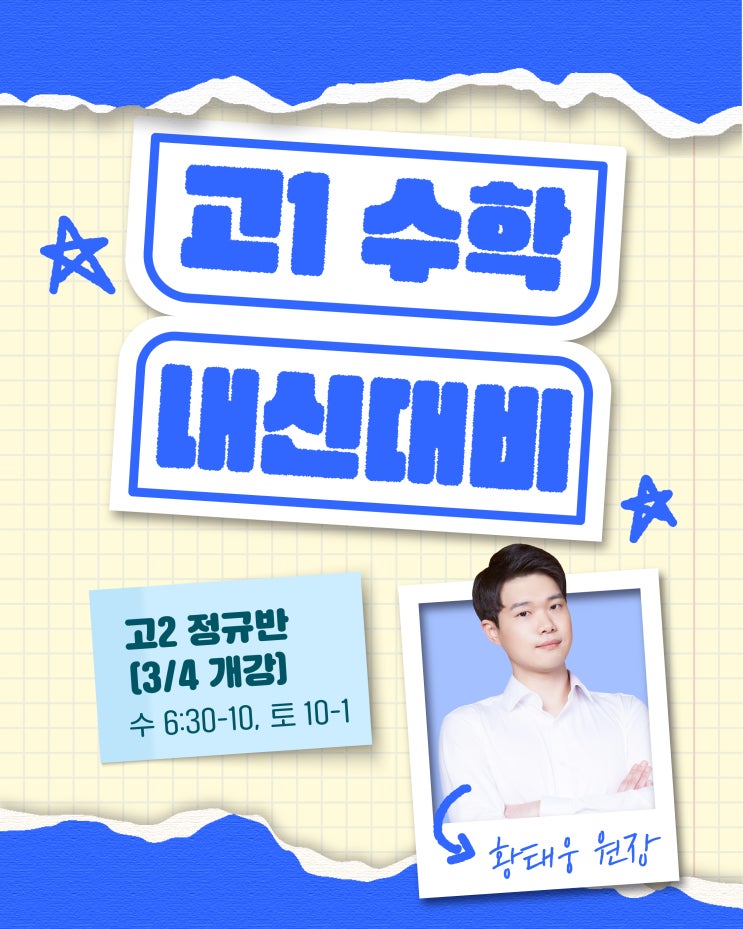 평촌 해냄 수학학원, "황태웅 원장" 고려대학교 전기전자전파공학부 졸업 해냄수학, 해냄과학 학원 원장 대성학력개발연구소 연간 콘텐츠 평가단 CSM17 (전 이감수학) 문항 검수 이투스 연간 콘텐츠 평가단 1학기 내신대비 평촌 수학학원, 황태웅 원장 수업을 들어야 하는 이유 ▣ < 개념 50%> - 흔들리지 않는 기본기 완성 고등수학은 '공식암기'로 풀 수 있는 과목이 아닙니다. 단원별 핵심개념을 ▶ 왜 그렇게 되는지 원리부터 이해하고 ▶ 문제에 어떻게 적용되는지 연결하고 ▶ 유형 속에서 반복 확인하는 구조로 설계합니다. 처음 배우는 고등수학을 '기억하는 개념'이 아니라, 스스로 '설명할 수....... <img src="https://blogthumb.pstatic.net/MjAyNjAyMjBfMjc4/MDAxNzcxNTkyNzU4NDg3.Zv-h1pNI97goualdPbdhrAyCfBEBts8CS2R05w3m7sQg.fBXmjgYUlqdIitG6CmfNhCjzfceJdvxk7dzOKaSGbEQg.JPEG/%28%BC%F6%C7%D0%293%BF%F9%B3%BB%BD%C5%B4%EB%BA%F1_%28260124%29_%B4%EB%C1%F6_1_%BB%E7%BA%BB_2.jpg?type=s3" />