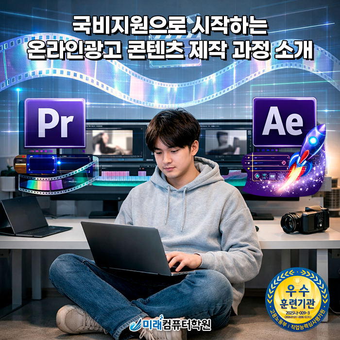 1. 국비지원으로 시작하는 온라인광고 콘텐츠 제작 과정 소개 온라인광고는 결국 콘텐츠로 승부가 나요. 그래서 이 과정은 디자인부터 영상편집까지, 실무에서 바로 쓰는 제작 흐름을 한 번에 잡는 구성입니다. 내일배움카드로 부산 국비지원 혜택을 활용하면 수강료 부담을 크게 줄이고 시작할 수 있어 국비지원학원 찾는 분들께 특히 좋아요. 미래컴퓨터학원에서는 실무 경험이 있는 강사가 기초부터 작업 습관까지 잡아주고, 수강 중간중간 결과물이 남도록 과제와 피드백 중심으로 진행합니다. 2. 포토샵·일러스트 기초와 실무, 상세페이지 디자인 기본까지 처음엔 포토샵으로 사진 보정, 합성, 텍스트 배치처럼 ‘광고에 바로 쓰는 이미지 편....... <img src="https://blogthumb.pstatic.net/MjAyNjAxMDlfMTEg/MDAxNzY3OTI4Mjc0OTMy.S45p91H85NoFYmkCiM-GknqvlSUqt8Tu4lN-IZPowBYg.gXYUv2HlZ4HJk1eoFz6B9X_IPBWdbPqj95cthVFqZqkg.PNG/%BE%C6%C6%AE%BA%B8%B5%E5_1.png?type=s3" />