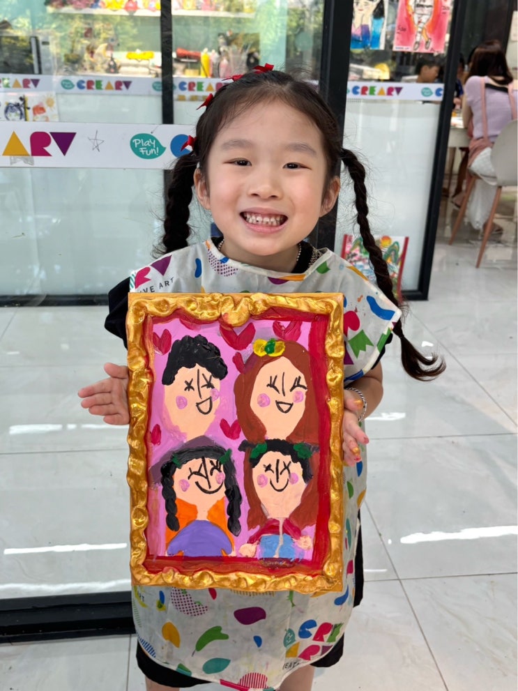 수업의 저작권은 크리아트와 센텀시티원 어린이에게 있습니다. 이번 주 수업에서는 아이들이 가족을 주제로, 소중함을 표현하는 시간을 가졌어요. 사진 속 모습이나 기억 속 장면을 떠올리며, 가족 구성원의 특징뿐 아니라 표정과 분위기까지 따뜻하게 담아냈답니다. 그 과정에서 단순히 ‘그림을 그린다’는 활동을 넘어, 관찰력·표현력·감정 이해를 자연스럽게 확장할 수 있었어요. 그림이 완성된 후에는 작품을 더욱 빛내줄 빈티지 금색 액자 만들기가 이어졌습니다. 아이들은 클레이로 액자의 형태를 직접 빚으며 소근육 발달과 촉각 경험을 쌓았고, 금빛으로 채색하면서 색채 감각과 질감 표현을 익혔죠. 특히 금색이 주는 고풍스럽고 클래....... <img src="https://blogthumb.pstatic.net/MjAyNTEwMzFfMTkg/MDAxNzYxODg3NzMzMzc2.rI_H4_8_Tx1C9xqVoUETSemdabsHrxlIsF_GOEZxfiQg.wIi3uT2aBAp-ruUSpkT-KCWdCuY0QMt-qVVTvw1j69wg.JPEG/IMG%A3%DF9847.JPG?type=s3" />
