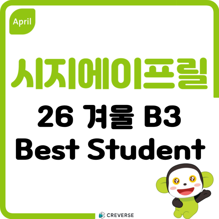 안녕하세요! Elevate Learning, Elevate Futures 시지에이프릴어학원입니다. 지난 겨울학기 2월 마무리 학습의 Best of Best, 'Best Student 수상자'를 발표하겠습니다. 수상을 진심으로 축하합니다~!! 우리 친구들 모두 고생 많았어요~ 봄학기에도 힘내서 다함께 즐겁게 공부해요~! ^^ - 선정 기준 & 기간 - <Best Students> [기간] 26/1/28-26/2/27 B3학기 [기준] 모든 시험성적, 필수 온/오프라인 과제, 수업 참여 등에서 제일 우수한 학생 ※ April Starter / Seedbed A: A3 학기 <Great Students> [기간] 26/1/28-26/2/27 B3학기 [기준] 이전 학기와 대비하여 태도, 과제, 시험성적 등에서 현저히 발전한 학생 ※....... <img src="https://blogthumb.pstatic.net/MjAyNjAzMDlfMjkz/MDAxNzczMDUyMTk4NzU5.u5WWOoOex_E0MORlFPBANHY4Eh9Kmgkg09yKIU9McjMg.Zmvku-x9M_R-NqmMALulQGQ-c9Tt6yeYTwOTgCT8YSog.PNG/%C1%A6%B8%F1%C0%BB_%C0%D4%B7%C2%C7%D8%C1%D6%BC%BC%BF%E4..png?type=s3" />