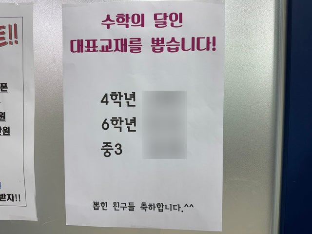 [학원소식] 송도파크자이 수학학원 제5회 연산왕 선발대회 수상 결과