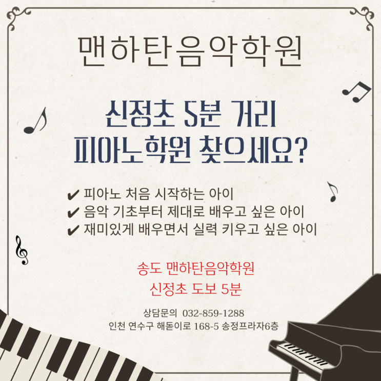 신정초 도보 5분 송도 피아노학원 | 맨하탄음악학원