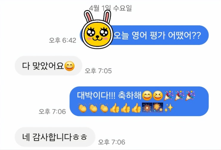 영어에 자신감 없던 친구가 학교에서 치른 영어평가에서 만점을 받았다고 합니다. 지난 번에 수학학원 가는 날인데 갑자기 영어학원을 와서 당황 했는데요, 그날 영어시험이 있었는데 그간 영어 한 과목만 평균에 못 미치는 성적이라 항상 속상했는데, 95점 받았다고 얘기 해주러 온 것이었어요. 얼마나 기쁠까요? '할 수 있다', '열심히 해보니까 되던데?'와 같은 작은 성공의 기쁨이 공부의 큰 동력이 되는 것 같습니다. 이번엔 만점이네요!! 너무너무 축하하고 고생 했어요✨️ 쌤도 항상 옆에서 도와주고 응원할게 #상현역영어 #상현동영어 #인싸영어 <img src="https://blogthumb.pstatic.net/MjAyNjA0MDFfMTA1/MDAxNzc1MDM4NDExNTUy.__euE3Z14VKQhuAnf4DQpJ7rjcjMOHENBUwv3OO6VqIg.odNzOWC5tDNU1UbC6ot7n-wAG7LPR1mnKtNR58gtx6sg.JPEG/900%A3%DF1775038101845.jpg?type=s3" />
