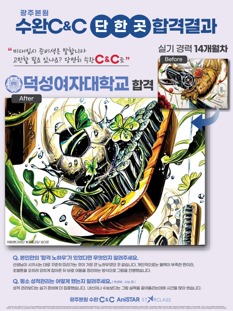 광주 미술학원 광주 본원 수완 C&C미술학원 합격자 실기 변화 과정! 공개 /신가동 미술학원