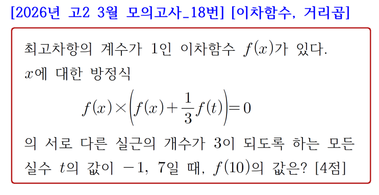 2026년 고2 3월 모의고사_18번(이차함수, 거리곱)